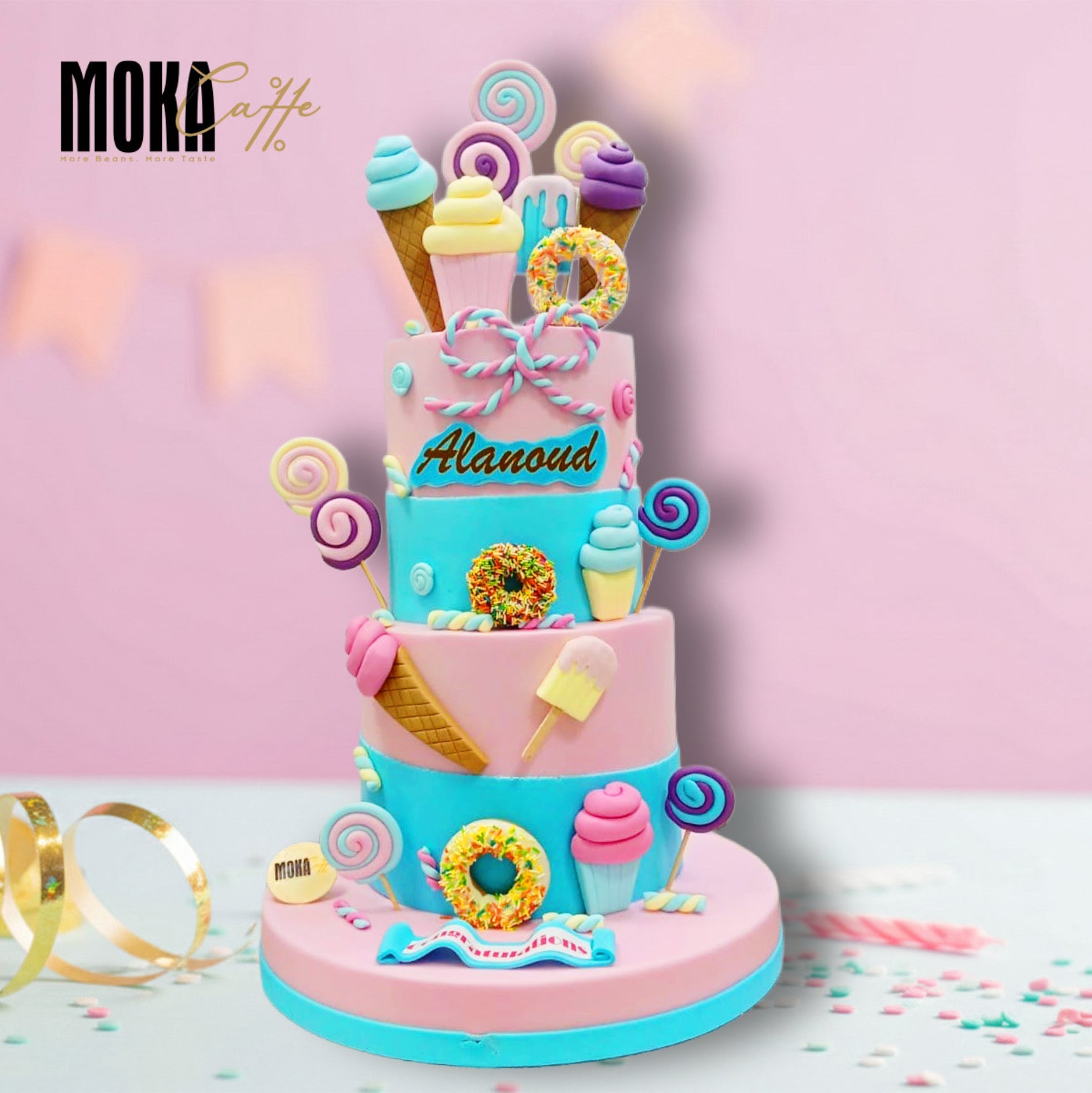 Our cakes are decorated using fondant or cream, depending on the selected theme and design. You may customize the cake by choosing your preferred flavor and size.